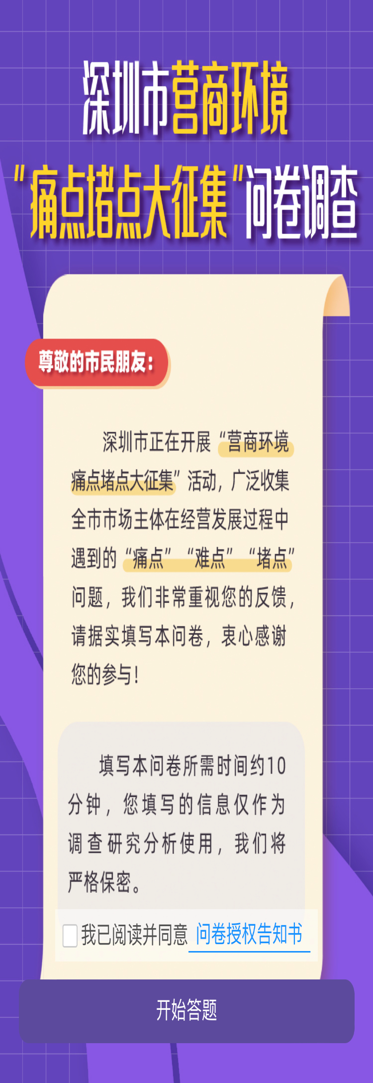 营造一流营商环境,需要人人参与!快点击下方链接或扫描二维码填写问卷,反馈深圳市营商环境存在的问题或提出优化建议吧!