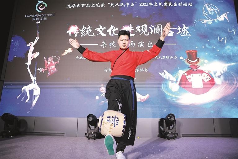 “此次专场演出在展示传统杂技、魔术项目的基础上,也融合了现代服装、舞美等效果。”据龙华区杂技家协会专职副主席刘钊介绍,参与演出的演员均是来自区杂技家协会的优秀青年骨干成员,后续还会组织更多骨干成员加入文艺惠民系列活动,以杂技专场演出进社区、校园等形式让更多市民能够近距离感受杂技、魔术的文化魅力,传承和弘扬中华优秀传统文化。
