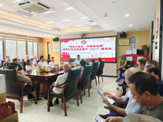 紫荆社区“战友会客厅”面积不大,却是“议事论事”的根据地。老班长们经常在此茶话家常,畅谈社区事。“小陈,我们聚豪园小区靠西门处有棵大树长枯枝了,可能有安全隐患,报你们协调修剪呀。”“小苏,我们有位战友近期腰部受伤了,我们约个时间一起上户慰问,看看有什么能帮忙的。”老班长们与社区工作人员反馈各类社区事务,并一同跟踪落实。
