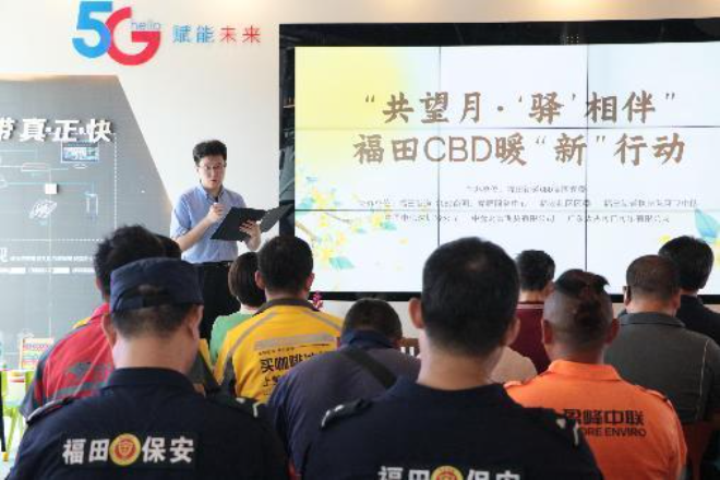 9月12日上午,福田区福田街道CBD商圈党委联合福田街道(CBD商圈)党群服务中心、福安社区团委、福田街道执法队环卫中队携手中国电信、中金财富期货、广东太古可口可乐等爱心企业,举办了CBD公益行——“共望月•‘驿’相伴”福田CBD暖“新”行动暨暖蜂驿站宣传活动,向新就业群体和户外工作者传递城市温度。