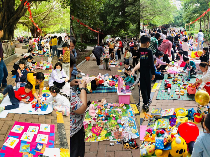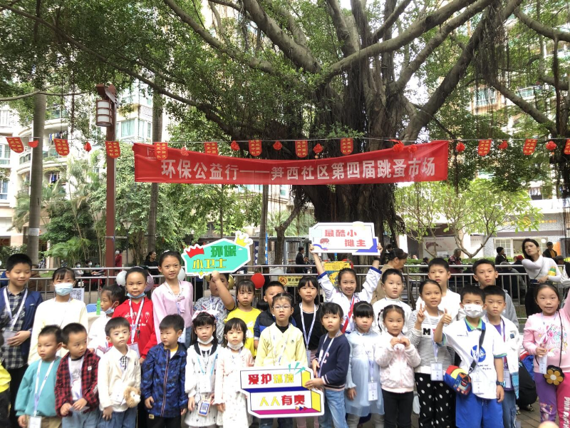 为弘扬低碳生活理念,提高居民环保意识,笋西社区党委积极发挥党建引领作用,将“地摊经济”和城市“文明风”有效结合,通过举办跳蚤市场,让闲置的东西动起来,让爱心在社区邻里间流动,以“以物换物,换出你的爱;共享快乐,创文共携行”为主题理念,2021年10月24日在嘉宝田花园联合笋西社区妇联、小猫咪教育机构共同举行公益跳蚤市场暨新时代文明实践推动日活动。
