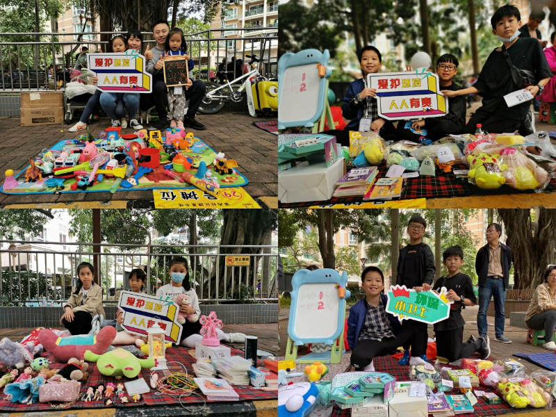 现场小朋友们带来了家中闲置的物品,他们在活动人员的引导下,将自己的物品整齐地放置在广场上的桌子或者空地上等候交换,有的家长和孩子一起做“店铺”招牌,现场置换物品有玩具、书、文具、DIY手工品等,这里低碳环保,让闲置物品继续发挥应有的价值,现场热闹而温馨。孩子们踊跃练摊,与同伴进行交流,协商互换,尝试一种新的生活方式,通过置换,不仅切身感受到低碳环保的乐趣,而且还结交了新伙伴,体会到分享的乐趣。这是一个温暖的集市,洋溢着微笑和关爱,传播着公益文化理念,凝聚公益力量,通过公益服务和爱心义卖,为居民带来实际便利。