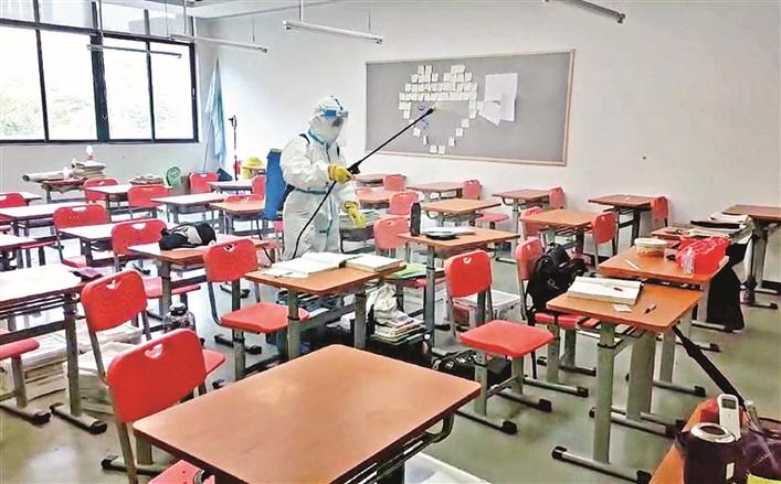 深圳市厚德书院工作人员对教室进行消杀。