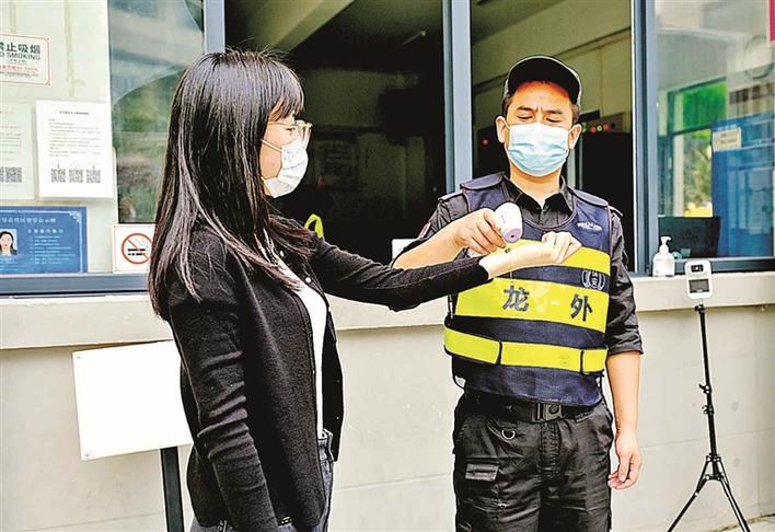 龙华区外国语学校返校教师接受体温监测。