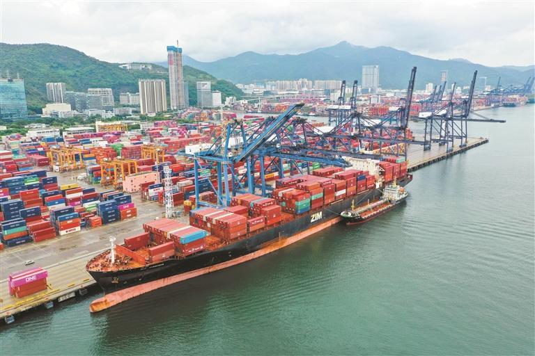 昨日,“盐田—中山”大湾区组合港线路正式开通,这是今年开通的首条大湾区组合港线路。线路周边外贸企业可通过内河轮船对接盐田港国际货轮,将家电、灯饰、五金等商品运往全球。图为繁忙的盐田港。