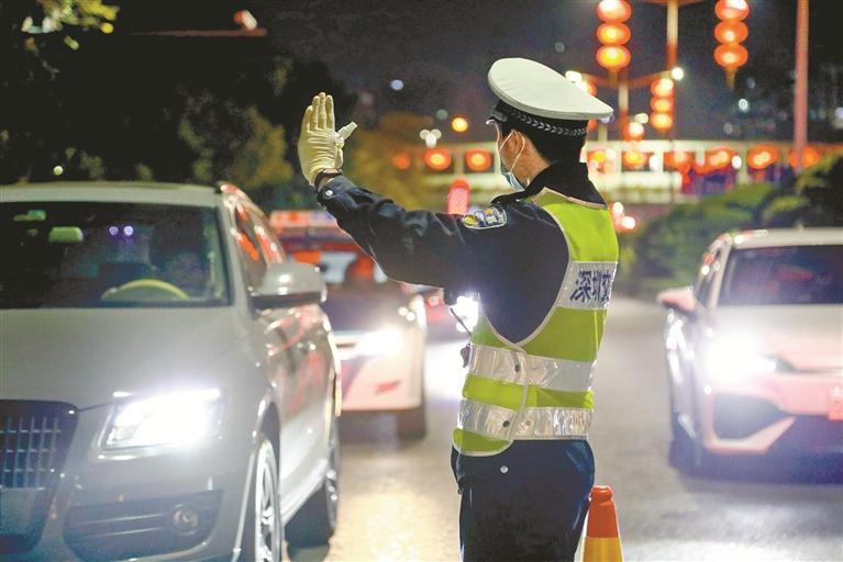 深圳公安交警夜间上路执勤,护航市民出行安全。