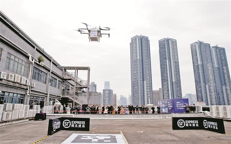 采用无人机低空客制化运输黄金珠宝,此前在国内尚无先例。罗湖区目前先期设置3个无人机机场,以日均超100公斤的货物核载量、“随时随地起飞、随叫随到运送”的灵活运输模式,完成水贝片区、特力布心工业区及李朗国际珠宝产业园的“店厂互通”,满足水贝黄金珠宝企业多场景的配送业务。