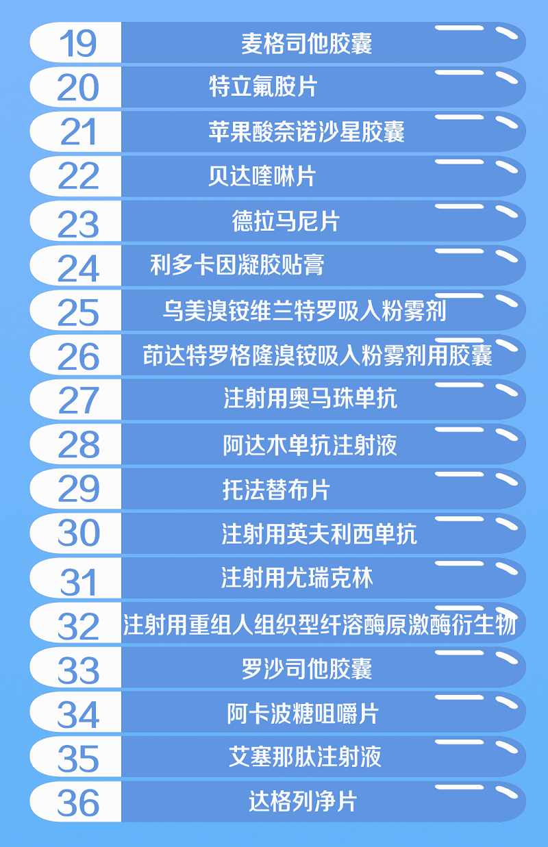 这些品种包括肿瘤、乙肝、高血压、糖尿病、类风湿性关节炎等10多个领域的药品,一共52个西药、18个中成药。