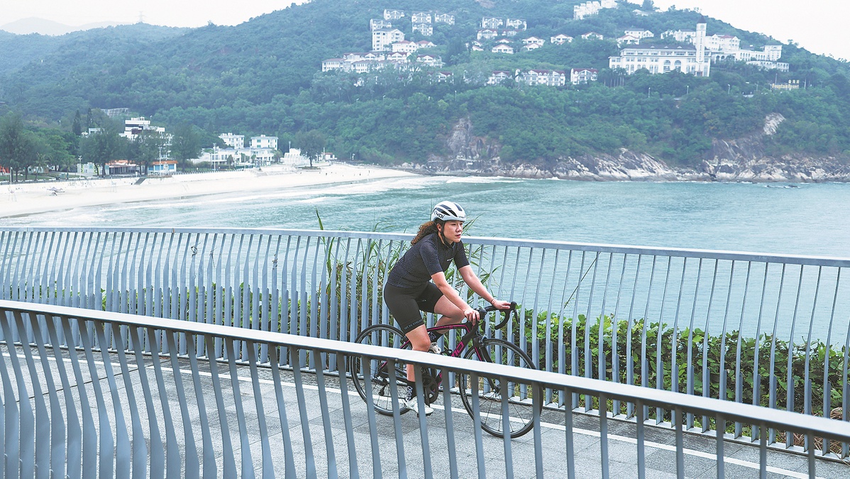 World champion cyclist Wong Wan-Yiu rides by the sea in Shenzhen, South China's Guangdong province, on Oct 29. Whether traversing the breezy coastal greenways of Shenzhen, a coastal city in southern China, or "looping" the 100-kilometer urban parkway in Chengdu, renowned as a "leisure city", cycling has emerged as a vibrant lifestyle choice, a social gathering hub, and a key driver of China's burgeoni