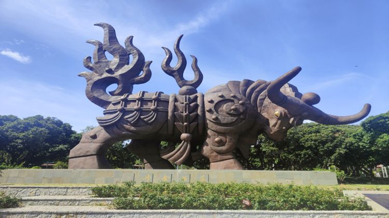 At the center of the park stands a 30-meter-high mighty golden ox, with a fire ball on its back. It is a symbol of the pioneering spirit of Shenzhen's reform and opening up. The park, with typical Lingnan-style landscape, is dotted with pavilions, terraces, corridors and bridges. Among the flowers and bamboo, the chirping of birds and insects echoes with the loud reading from students nearby, creating a harmonious and pleasant environment.