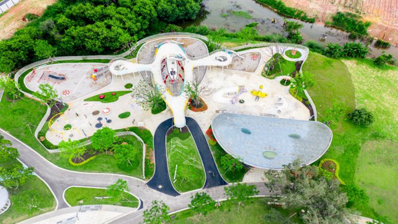 Minghu City Park is located northwest of the junction of Guangming Boulevard and Genyu Road, with a total area of about 386,000 square meters. Green space and hard surface pavement take about 67,000 square meters, while the water area spans 321,700 square meters, including the reservoir area. The park is designed as an ecological site combining leisure and recreation, and it also features a lotus pond and serves the surrounding Tangwei Community.