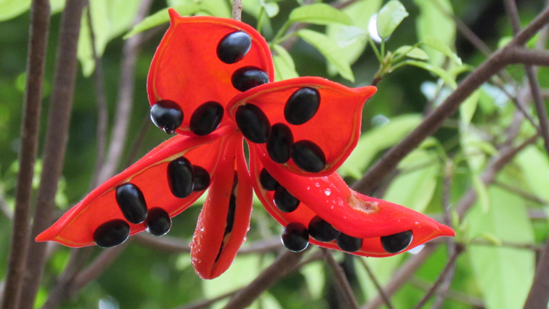 The flowers of Sterculia lanceolata are pink, plentiful and elegant.