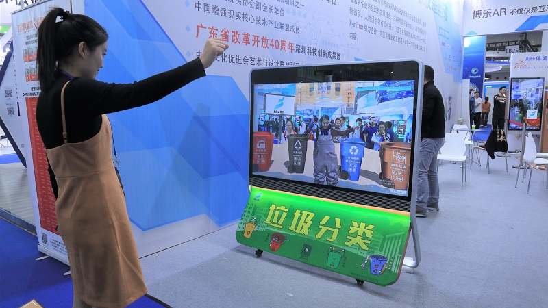 Shenzhen Blaz Information Technology Co. Ltd. is one of the companies that are making garbage sorting more fun. Visitors can simply wave their arms to identify and put the garbage that pops on the screen into the right bins. Players will get points for every correct classification and receive feedback for their wrong answers. The company’s CEO, Zhu Wenzhen, said the screens are very popular in public spaces like shopping malls, cinemas and exhibition areas.
