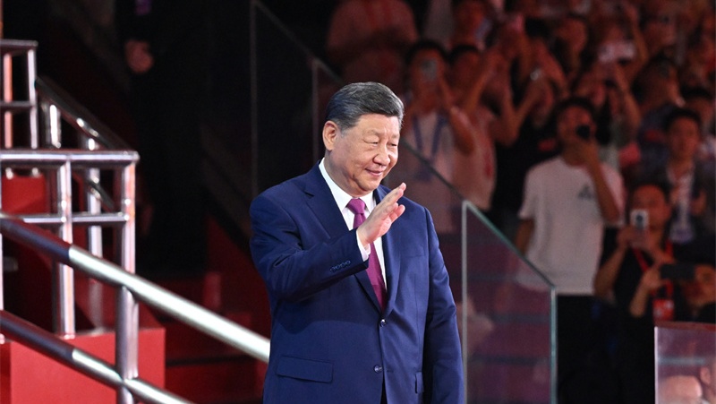 Yu Yang, an Olympic badminton gold medalist, ignites her torch from one held by humanoid robot Kuavo on November 3th during the torch relay held in Shenzhen, Guangdong province, for the 15th National Games. The 15th National Games will officially open in Guangzhou, capital of Guangdong province, on November 9. Besides the 419 gold medals in 34 competition events for professional athletes, 166 gold medals will be on offer for the