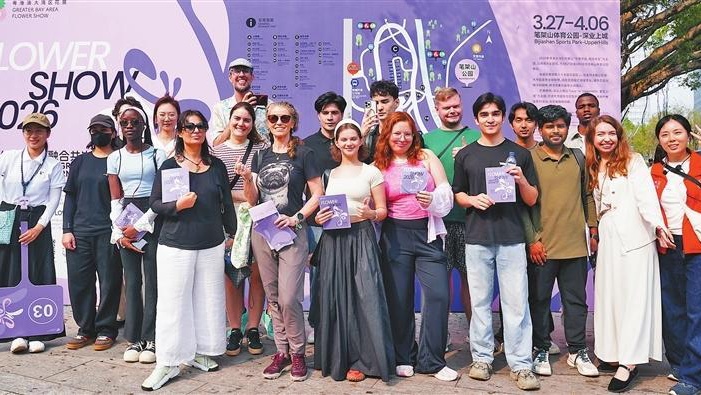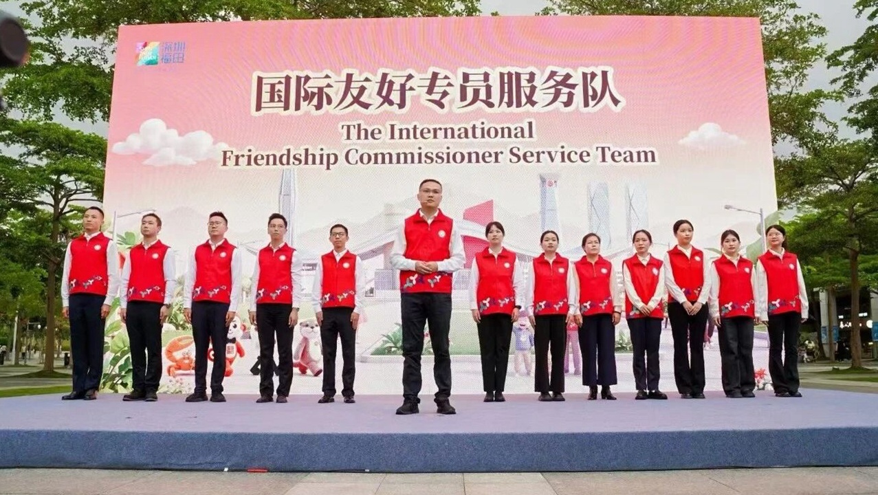Robots wearing volunteer vests welcome visitors at a volunteer service station in Qianhai Stone Park in Shenzhen. China's first robot volunteer service station became operational at the park on March 20. Developed by local companies, the robots offer eight key services: daily consultations, convenience assistance, patrol reminders, knowledge outreach, policy explanations, emergency support, interactive communication, and entertai