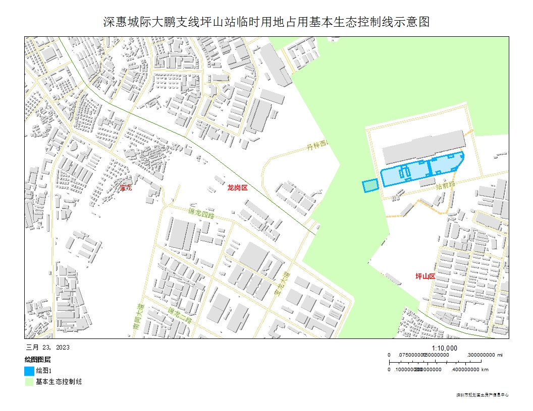 深惠城际大鹏支线坪山站临时用地选址占用基本生态控制线3882.51平方米,拟申请占用至2026年11月19日,具体情况见附图。