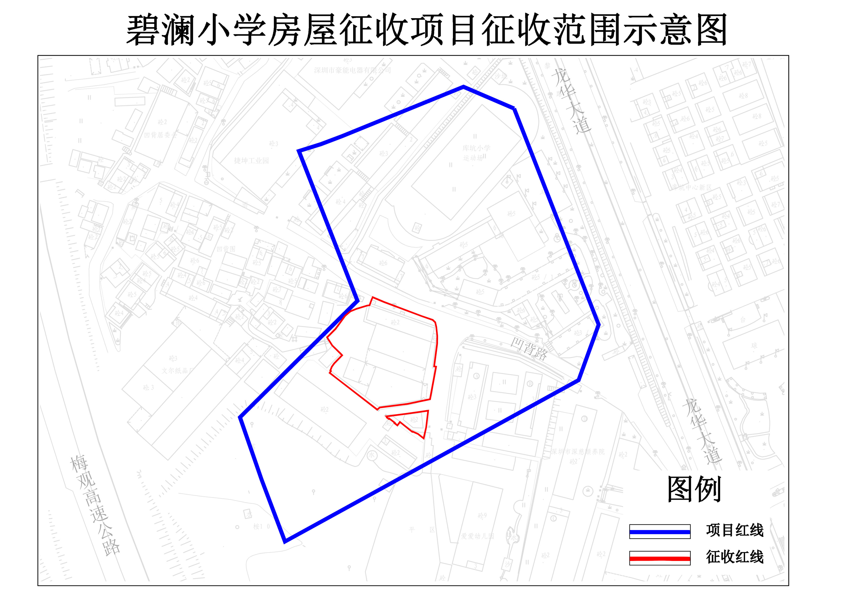 因碧澜小学建设项目的需要,根据《国有土地上房屋征收与补偿条例》(国务院令第590号)、《深圳市房屋征收与补偿实施办法(试行)》(深圳市人民政府令第292号)、《深圳市人民政府关于修改部分规章的决定》(深圳市人民政府令第342号)等相关规定,现决定依法征收碧澜小学建设项目范围内的房屋(国有土地使用权同时收回)。具体征收事项如下: