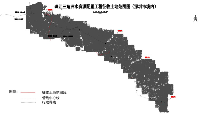珠江三角洲水资源配置工程征收土地范围图(深圳市境内)