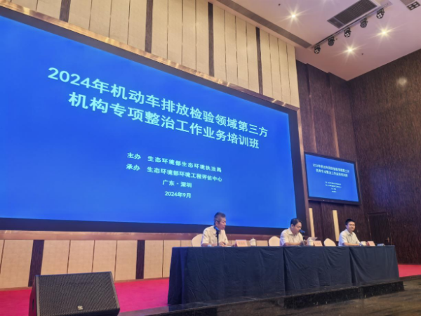 9月27日上午,由生态环境部生态环境执法局主办,生态环境部环境工程评估中心承办的“2024年机动车排放检验领域第三方机构专项整治工作业务培训班”在深圳市龙岗区开班。全国31个省(自治区、直辖市)和新疆生产建设兵团的90余名地市级生态环境部门负责同志参加培训。我局20余名机动车排放检验领域的执法业务骨干参加了线上培训。执法局孙振世副局长出席了开班仪式。