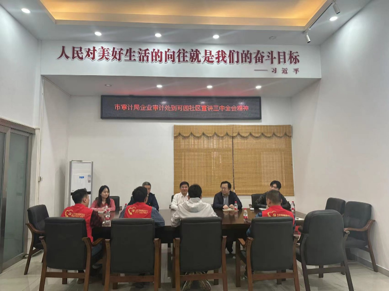 近日,市审计局党组成员、副局长、机关党委书记郑奕新带领企业处党支部前往“一对一”挂点的布吉街道可园社区,开展“学习贯彻党的二十届三中全会精神”宣讲活动,推动全会精神走进社区、深入基层,推动基层治理工作提质增效。