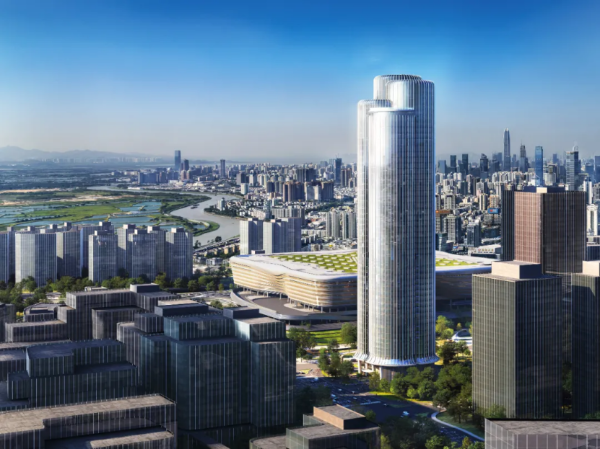 新皇岗口岸综合业务楼项目位于福田区福田南路与百合三路交汇处,总建筑面积约17万平方米,地下5层,地上50层。项目以“流水叠石”为核心理念,是深圳河套深港科技创新合作区“一心两翼”规划布局的核心建筑。建成后,项目将服务于新皇岗口岸非现场业务工作,成为串联广深港科技创新走廊的重要枢纽。