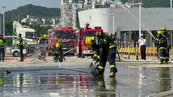 演练全程采用“实兵、实战、实装”模式,结合视频预录、现场直播和旁白解说,真实还原事故现场。各单位通过标准化应急预案、多部门联合响应机制,从火情发现到现场管控均实现无缝衔接,充分彰显口岸单位“一体化”应急体系的实战效能。