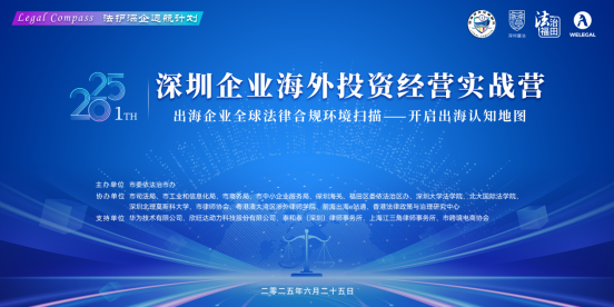Legal compass 法护深企远航计划——2025年深圳企业海外投资经营实战营系列活动将贯穿全年,六期活动围绕涉外法治六大主题展开实训,内容覆盖法律合规、跨境投资、争议解决、数据隐私及知识产权等十九个领域。每月一期邀请华为、中兴等知名法务团队、资深涉外律师、机关实务专家、高校专家学者,通过案例剖析、风险推演等场景化训练,与中小企业分享出海风险应对和国际商事纠纷解决的实战经验。今年预计服务3000家中小企业,以实战路径为企业“走出去”筑牢法治屏障。