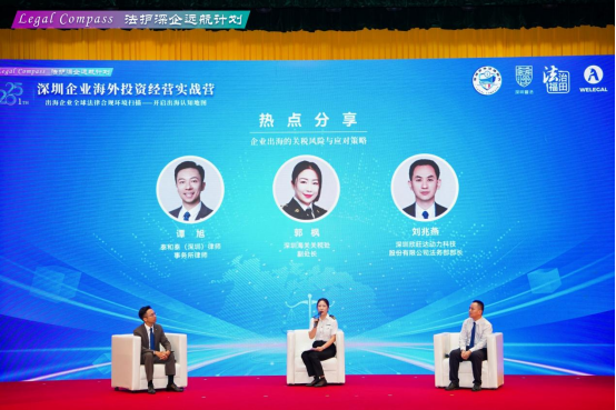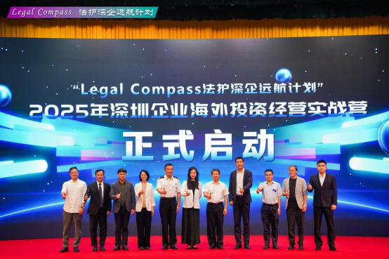 2025年6月25日,由深圳市委依法治市办主办,深圳市商务局、深圳市中小企业服务局、各区依法治区办和各行业协会协办的“Legal compass法护深企远航计划——2025年深圳企业海外投资经营实战营”第一期活动,在福田会堂顺利举行。活动以“全球法律合规风险雷达扫描——开启出海认知新地图”为主题,围绕关税策略、劳务用工合规、涉外法律风险防控三大热点,吸引了480家企业代表、律师、有关市直机关负责同志,以及深圳大学、北大深圳国际研究院的师生到场参与。本次活动旨在“保护企业海外利益,保卫科技企业出海”,通过搭建平台,助力出海的中小企业向龙头企业学习。
