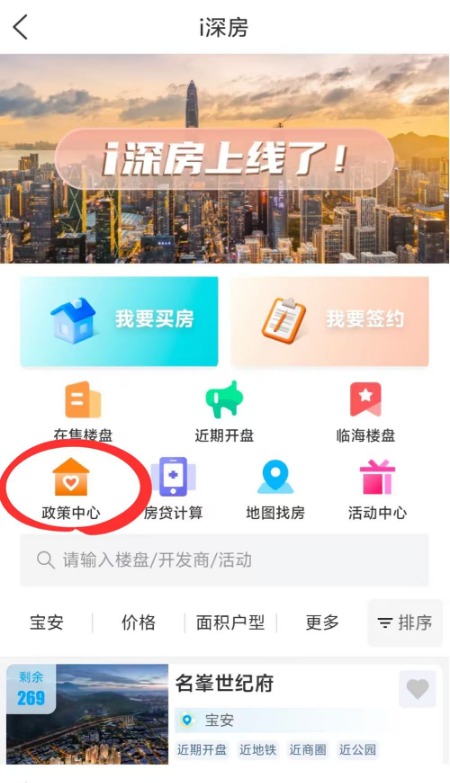 (点击“政策中心”,可查看深圳房地产和住房公积金政策,房屋交易和住房公积金办事指南等)