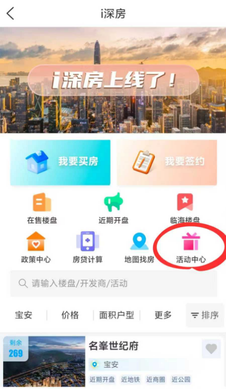 (点击“活动中心”,可第一时间获知深圳市最新推出的房地产优惠活动)