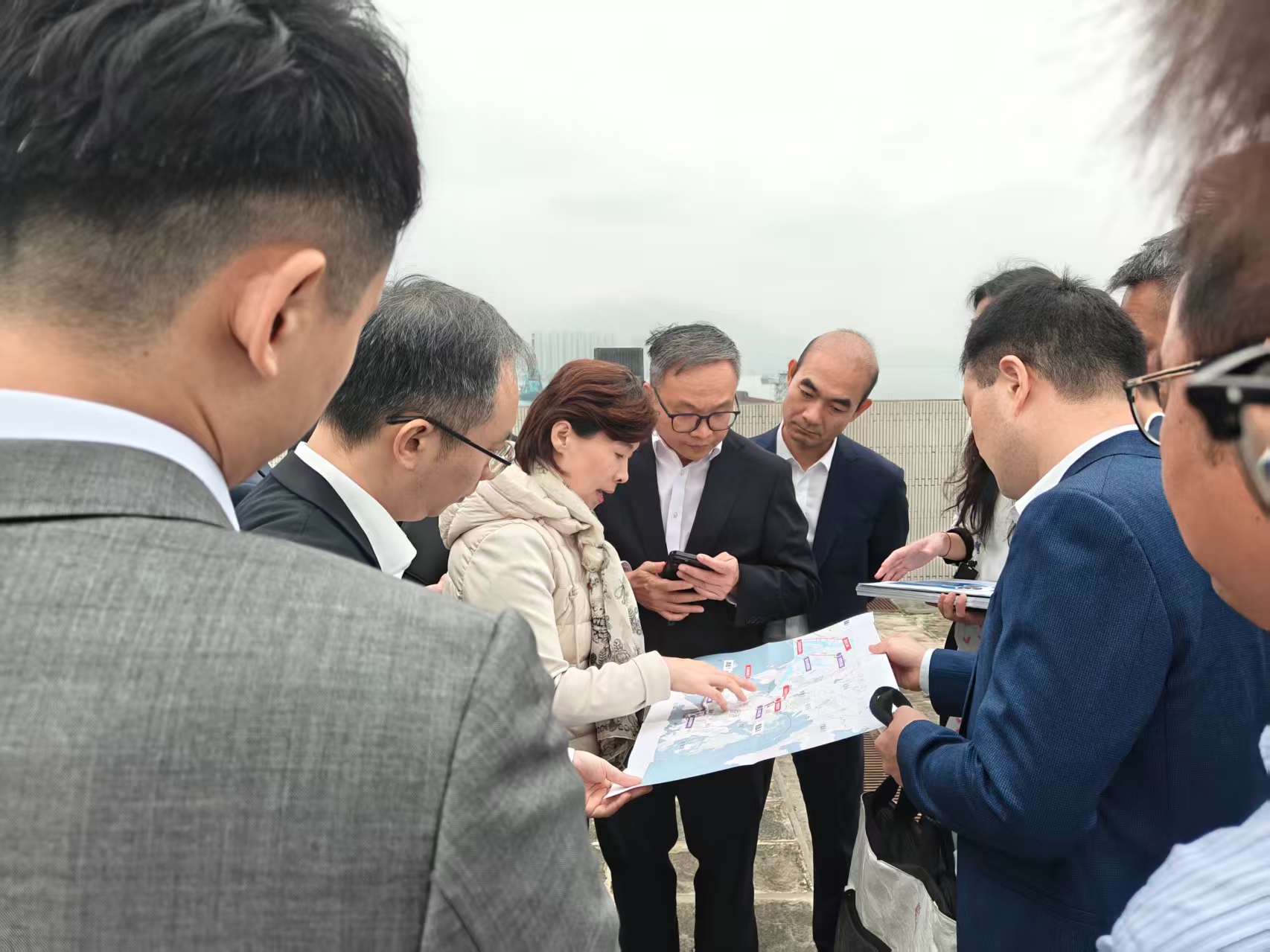郭子平先后赴深圳文锦渡口岸、香港上水及屯门等实地查看起降场地,了解低空跨境航线、出入境及清关安排和基础设施配套等。听取港方关于低空经济工作组架构、“监管沙盒”试点推进、跨境保障流程及后续工作的详细介绍。