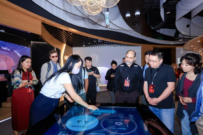 参访团一行来到前海哈罗外籍人员子女学校,深入了解前海为国际人才家庭打造的高品质教育配套,亲身体验“安心创业、舒心生活”的前海温度。随后,参访团走进前海5号楼,近距离触摸智能机器人、AR眼镜、3D打印等前沿科技产品,现场感受前海充满活力的创业生态与强劲的科技发展脉搏。