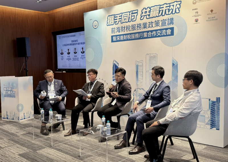 讨论环节由中瑞国际集团董事长何源泉先生主持,多位嘉宾分享了在前海发展的机遇与体会。香港税务学会、名策高顿税务师事务所副会长及合伙人何志威先生认为前海为港澳专业人士提供了极佳平台,强调香港专才需主动适应内地商业模式以把握机遇。香港华人会计师公会及广东诚安信会计师事务所(特殊普通合伙)深圳分所财务长、港澳合伙人周紫杰先生分享了在前海设立分所的经验,认为前海政策助力跨境服务升级并降低营运成本。深圳郑郑会计师事务所合伙人蔡仲豪先生及华盟科技咨询深圳有限公司合伙人叶魏阳先生认为聚集区提供了“最可靠、最好、最强”的商务环境。