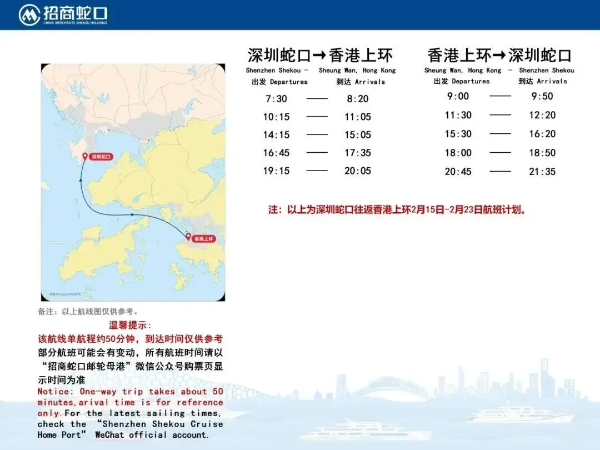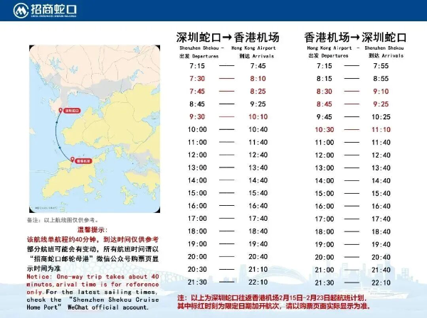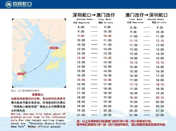 为迎接新春的到来,丰富旅客春节出行选择,深圳国际邮轮母港(蛇口邮轮中心)春节假期船班时刻表发布。