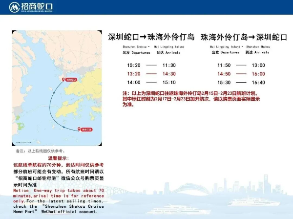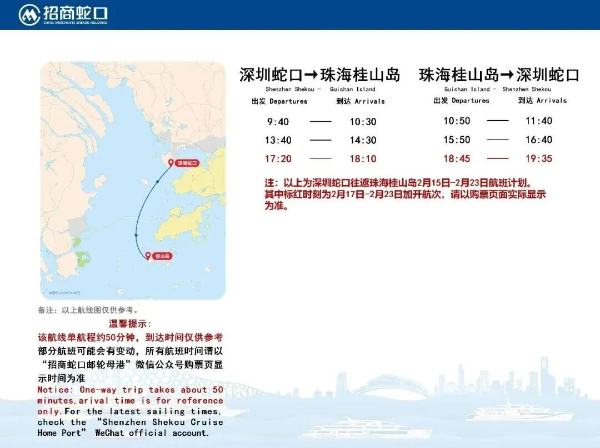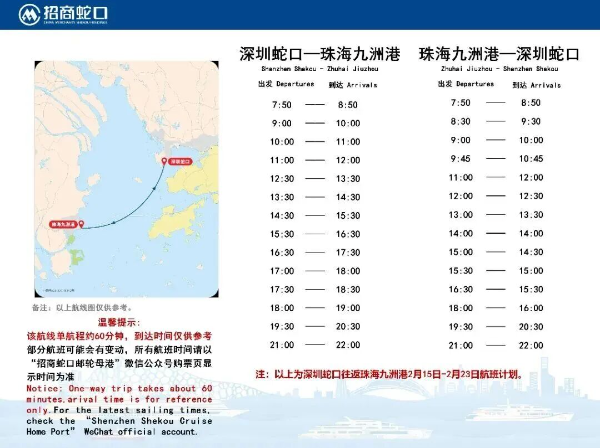 深圳蛇口⇋横琴(长隆)/珠海九洲港