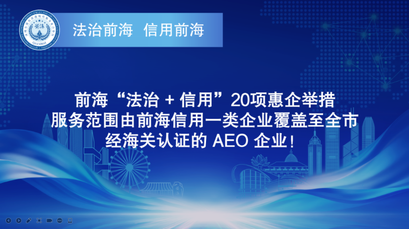 4月10日,“法治+信用 赋能前海”联合助企宣讲活动在前海仲裁大厦成功举行。本次活动由前海管理局联合深圳海关、深圳国际仲裁院共同主办,在年初15项精准助企举措的基础上,优化扩容至20项,正式推出前海“法治+信用”助企举措2.0版。同时,服务范围进一步扩大,由前海信用一类企业延伸至深圳市经海关认证的AEO企业,以法治护航与信用激励,助力企业降成本、增便利、提效能。此外,深圳海关现场发布2026年AEO赋能12项措施,支持企业开拓国际市场。