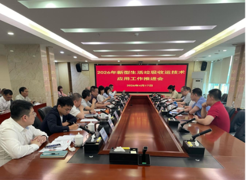 4月17日上午,市城管和综合执法局副局长汪斌在城管大厦主持召开2026年新型生活垃圾收运技术应用工作推进会,市环卫处、市分类中心及相关企业、技术单位代表参加会议。