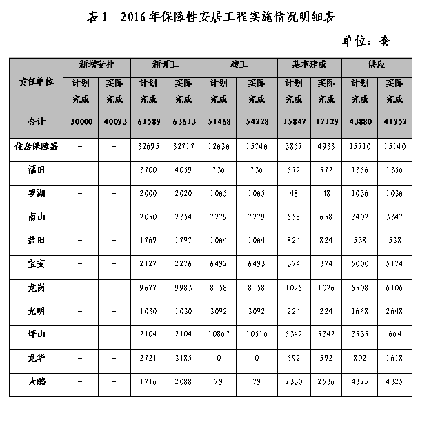 破解土地资源困境,通过城市更新配建、产业园区配建等渠道,向存量土地要资源。2016年,计划新增安排建设保障性安居工程项目3万套,实际新增安排约4万套,完成年度目标的133%。