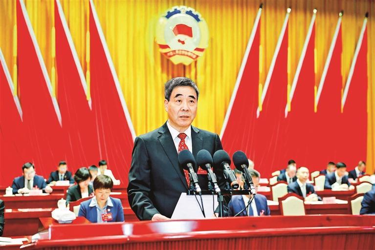 区政协主席熊佩锦代表区政协常务委员会作工作报告。