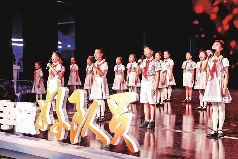 龙华区少儿民乐团、龙华区少儿合唱团、龙华中心小学和龙腾学校的学生们先后表演民乐演奏《盛世国乐》、合唱《初心向党永不忘》、朗诵《红领巾诵中国》、舞蹈《成长在祖国的怀抱里》,小演员们个个精神饱满,神采飞扬,赢得阵阵掌声,把活动氛围推向高潮。