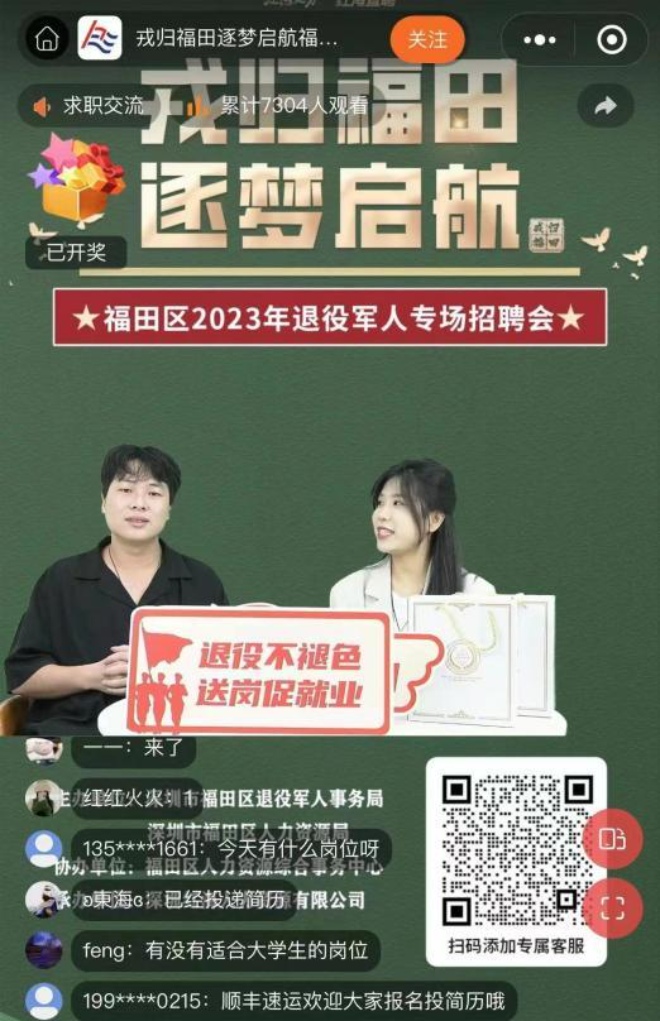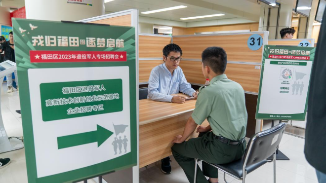 10月13日下午,以“戎归福田 逐梦启航”为主题的福田区2023年退役军人专场招聘会在福田区人力资源综合事务中心举办。