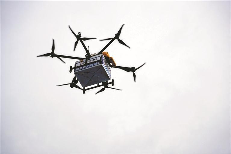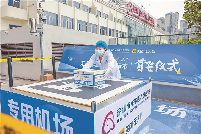 一架搭载着检验标本的无人机,飞往龙华区人民医院。