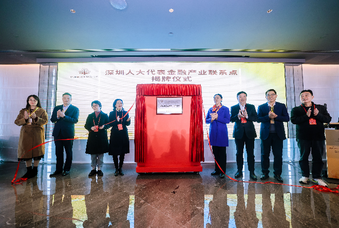 12月22日,深圳市人大代表金融产业联系点揭牌启用仪式在福田金融综合服务平台举行。现场,深圳市人大常委会委员、计划预算委二级巡视员周红梅,市人大常委会选联任工委副主任杨云彪,福田区人大常委会党组副书记、副主任孟漫,福田区人大常委会党组成员、副主任田敏,以及市、区人大代表,政府相关部门负责同志等共同为深圳市人大代表金融产业联系点揭牌。