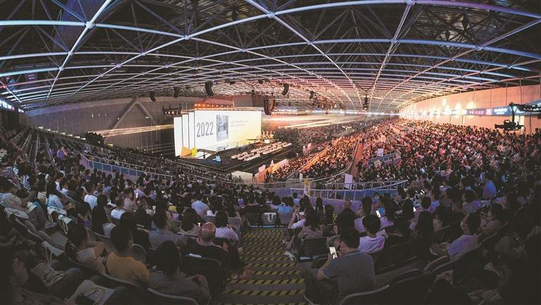 龙华文体中心成为多项重大活动举办场所。图为樊登2023知识进化论演讲现场。