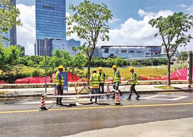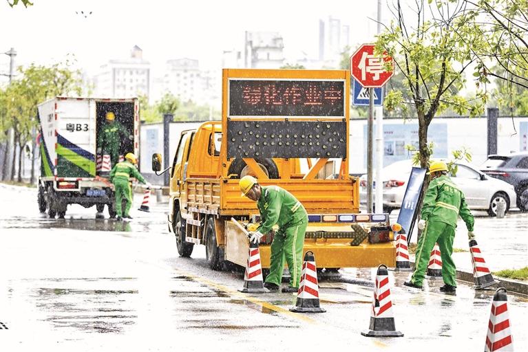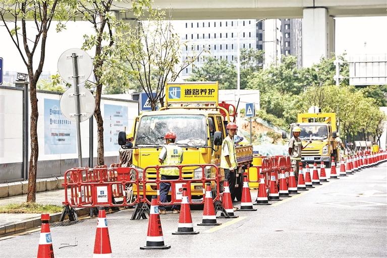 深圳市交通运输局龙华管理局组织演练队伍展现道路养护规范施工作业场景。