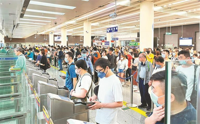 ▲随着深港口岸全面恢复正常通行,越来越多的旅客选择在周末或节假日跨境出游,今年上半年福田口岸出入境旅客近1600万人次。 黄俊生 摄