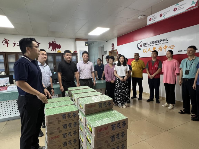 随后,许思平一行向各社区工作站一线巡查人员送去了夏季清凉饮品,先后到盐田社区等社区工作站,对社区近几个月来市容环境巡查的辛苦付出表示感谢,叮嘱他们在炎热天气里科学调配力量,做好防护措施。