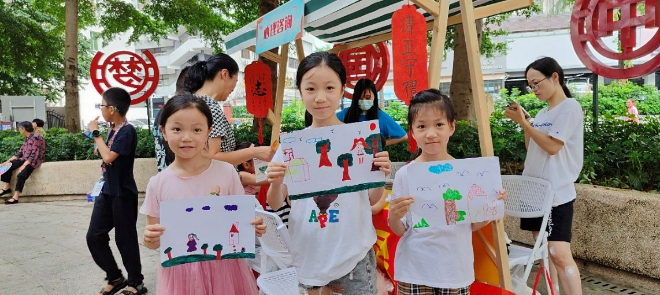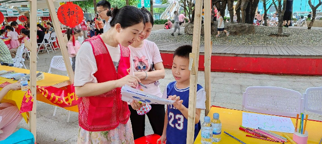 活动现场,心理咨询摊位热闹非凡,心理咨询师向前来参与活动的家长居民普及南园街道为维护儿童青少年心理健康而打造的家校社联动防护金字塔体系,同时推广为少儿心理健康提供的社交团体、情绪调试、个体咨询、亲子辅导等公益服务,帮助更多居民解决孩子成长过程中的困惑。
