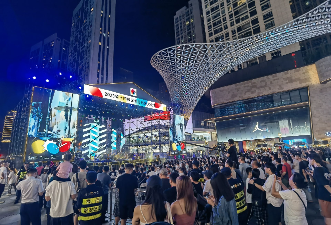 10月5日晚,在福田区卓悦中心喷泉广场,曾获四次格莱美奖的明星爵士鼓大师安东尼奥·桑切斯领衔他的乐队,以及曾获评全球十大鼓手的Stéphane Galland,比利时最具代表的青年爵士鼓演奏家Antoine Pierre,共同带来世界顶级打击乐大师专场演出。现场有数千市民观看,并且吸引了很多专门从全国各地的打击乐爱好者和从业者。