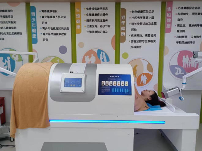 据社区工作人员介绍,本次福保街道针对社区居民和特殊人群的公共卫生服务进行了突破性创新,引进合家健康中医光子生态疗法,在益田社区率先设立示范服务点,为居民提供中医经络数据物理建模、中医光子理疗体验、中医药健康科普宣传等服务。
